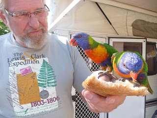 First thing each morning a chattering flock of very friendly Rainbow Lorikeets arrived seeking breakfast from the enchanted campers. Despite the many hundreds of kilometres south we have travelled, we are still enjoying hot, summery weather, and are not looking forward to the cool Spring weather at home.